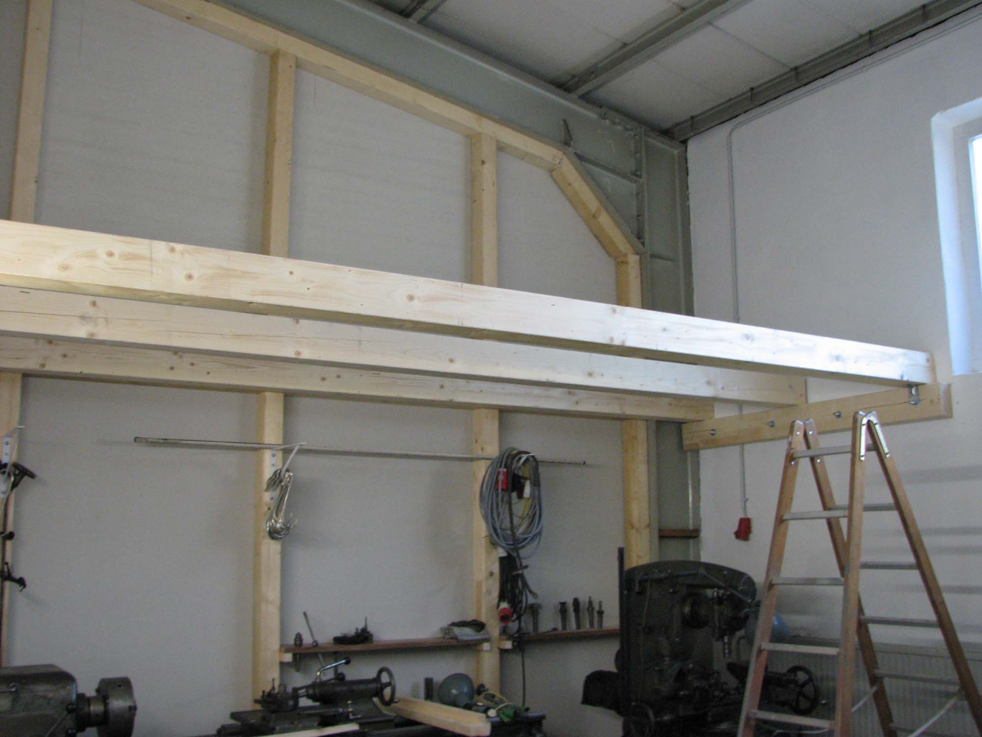Um alle Teile in der Garage einzulagern wurde im hinteren Teil der Werkstatt eine Zwischenebene eingebaut. Dort werden nun alle Teile, die vorübergehend im Kirnbacher Bauhof und im Feuerwehrhaus untergebracht waren, gesammelt und Stück für Stück wieder hergerichtet oder ersetzt.