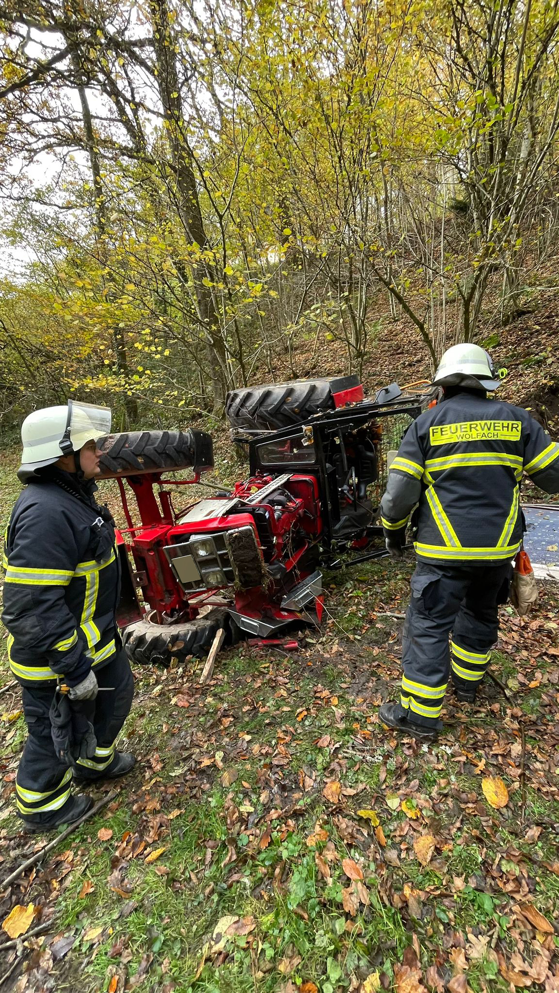 | Von Passanten wurde ein Traktor gemeldet, der vom Weg abgekommen ist uns sich überschlagen hat. Beim Eintreffen der Feuerwehr wurde die Person bereits vom Rettungsdienst betreut und musste auch nicht durch uns befreit werden. Der Traktor wurde gesichert und auslaufende Betriebsstoffe aufgenommen. |
