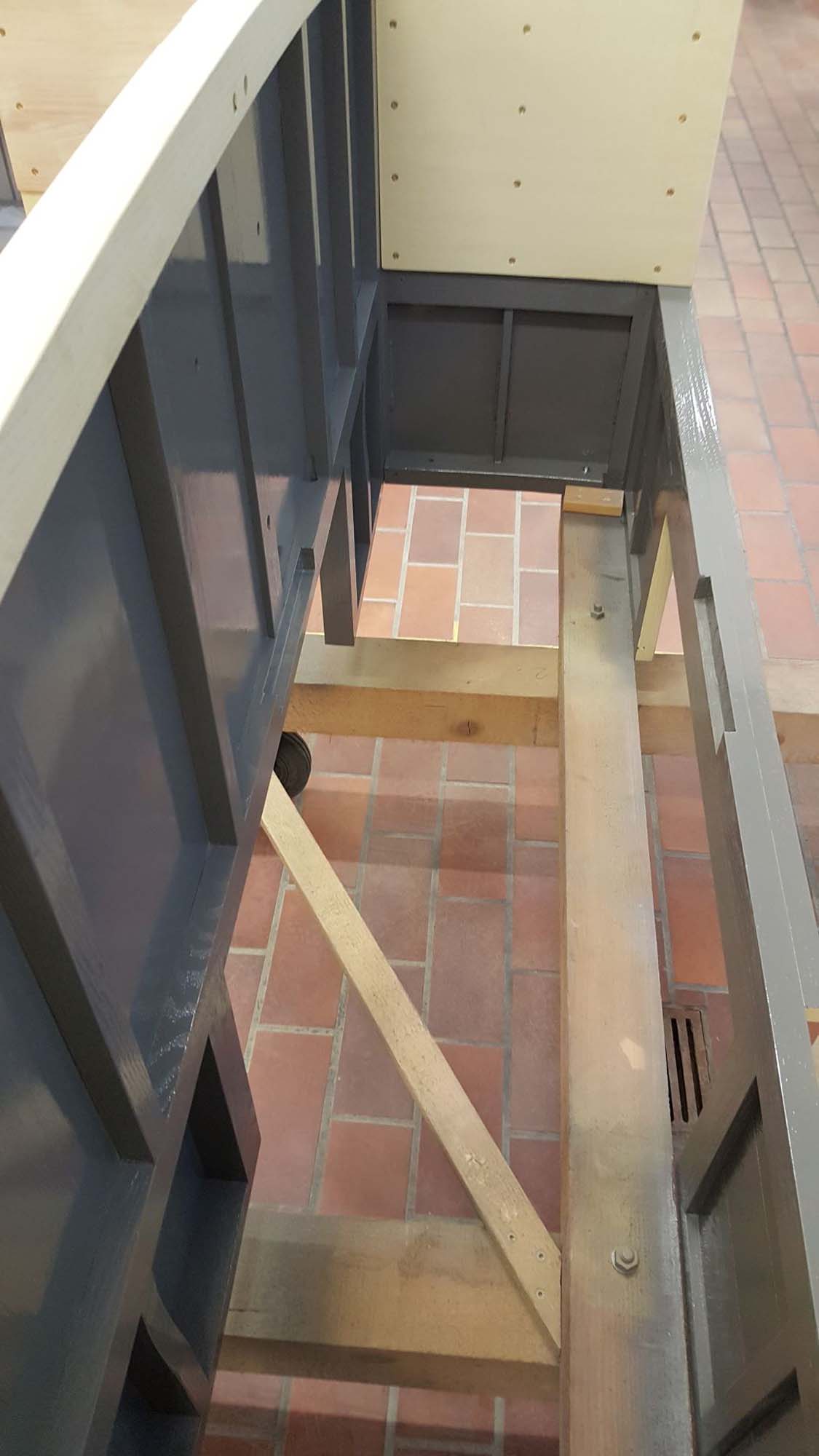 Nach dem vorderen Teil des Aufbaus wurde nun auch der hintere Teil von Innen lackiert, während der vordere Teil schon seine rote Lackierung beim Lackierer bekommt.