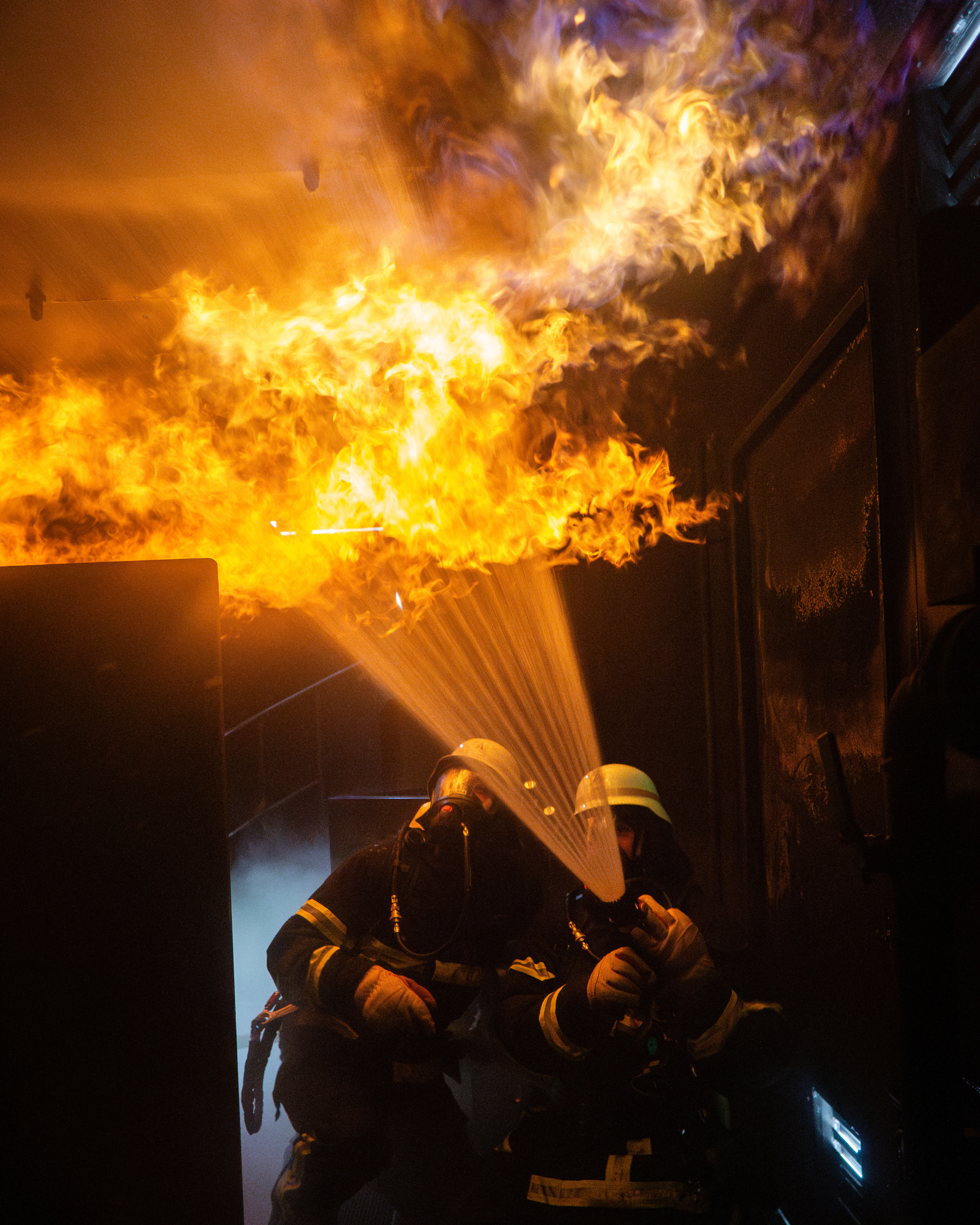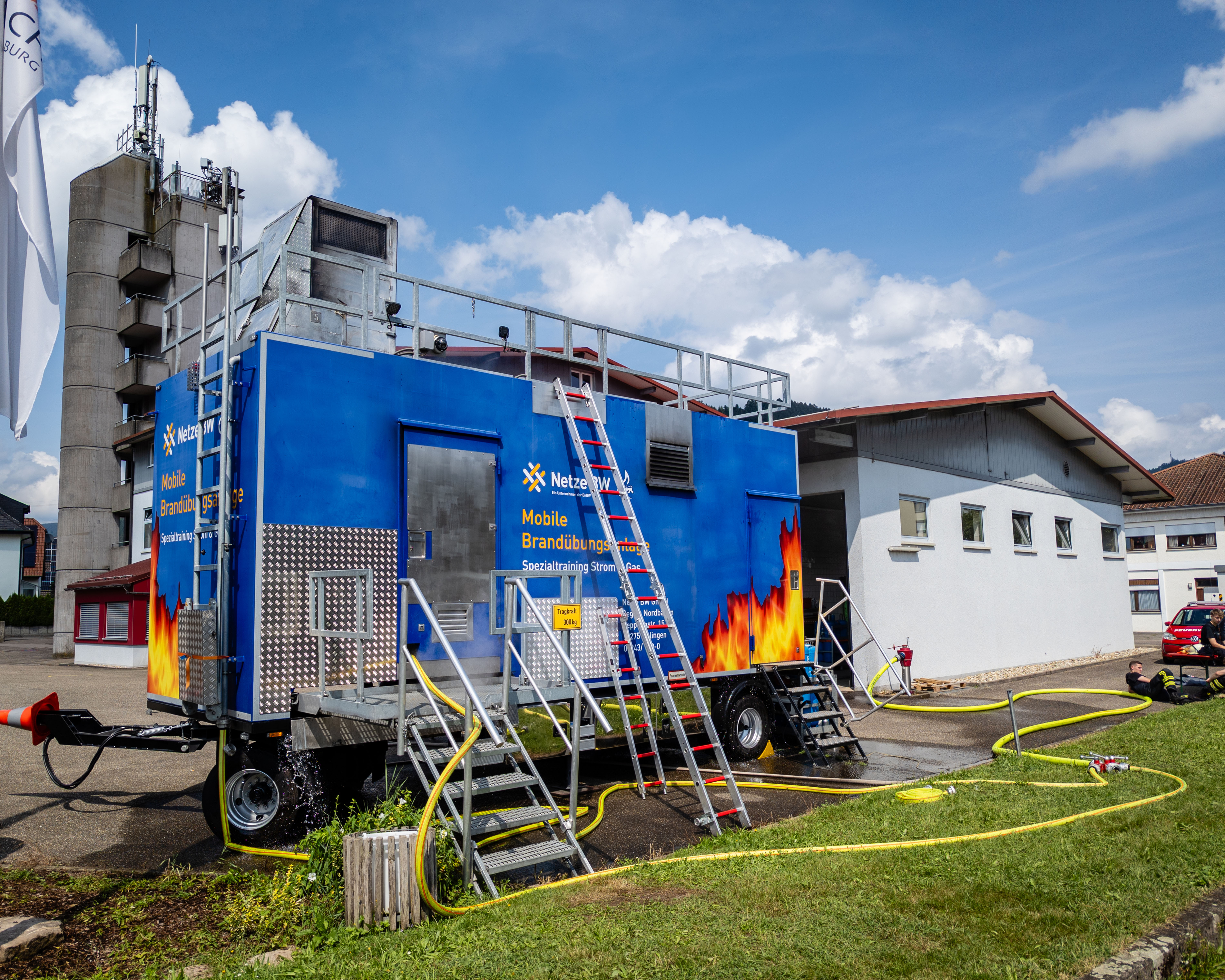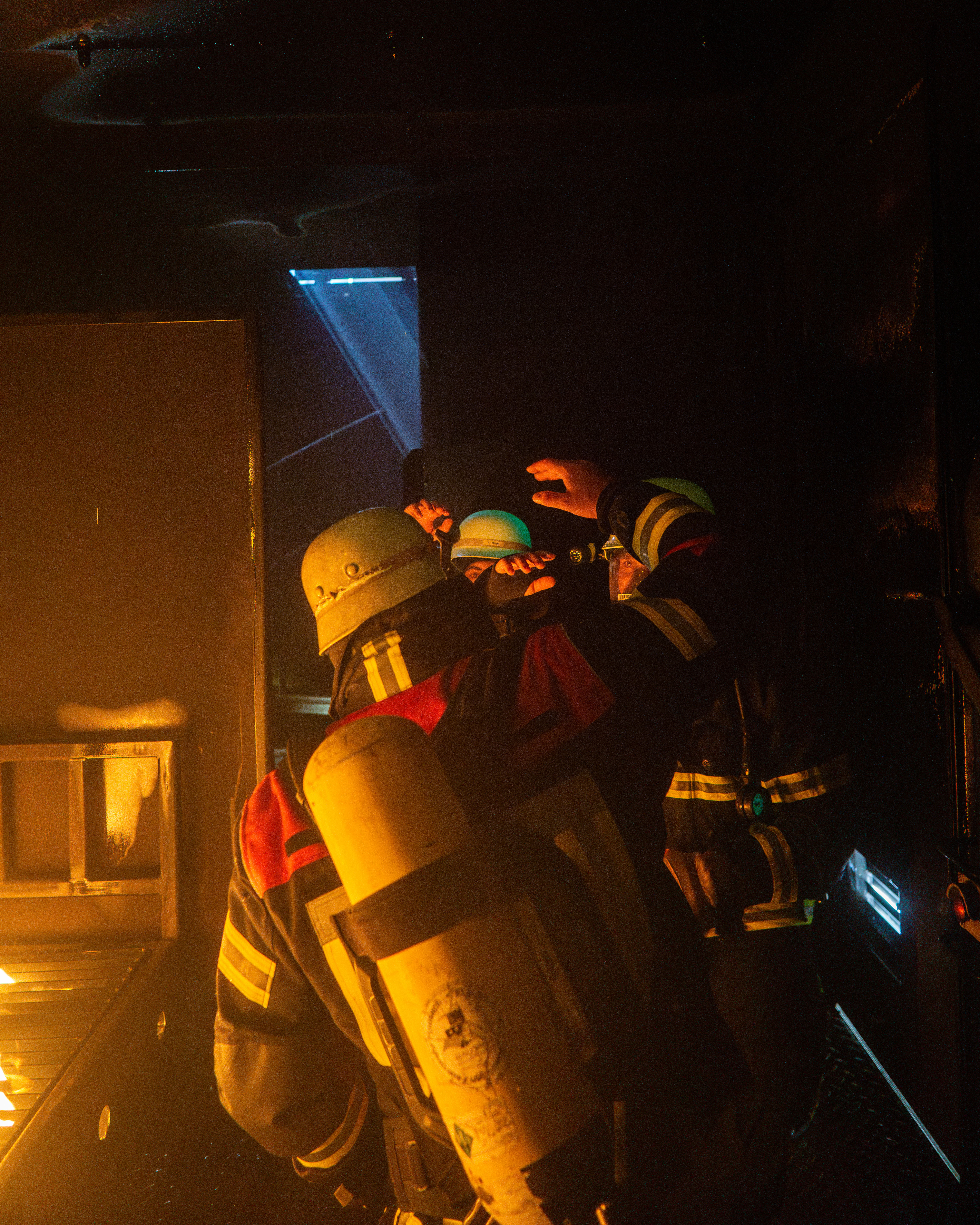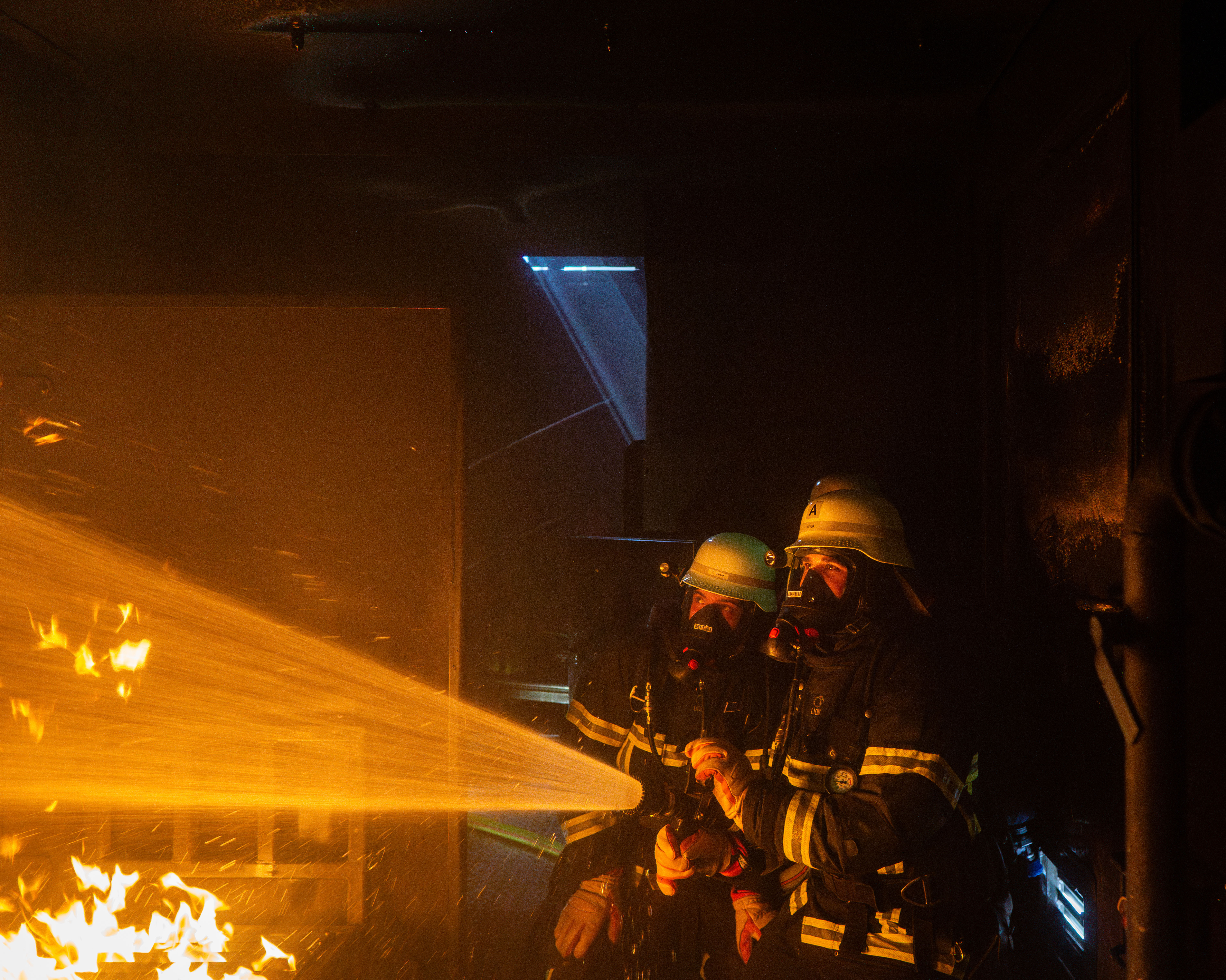 In diesem gasbefeuerten Container haben die Ausbilder die Möglichkeit, verschiedene Brandsituationen darzustellen, sodass die Einsatzkräfte im Inneren des Containers mit Flammen, Hitze und Rauch konfrontiert werden. Auf Knopfdruck können beispielsweise Attrappen eines Bettes, eines Schaltschranks oder eines Gasschiebers in Brand gesetzt werden. Auch eine sogenannte Rauchgasdurchzündung, bei der sich Pyrolysegase plötzlich entzünden, kann simuliert werden, sodass auch diese Gefahrensituation trainiert werden konnte.