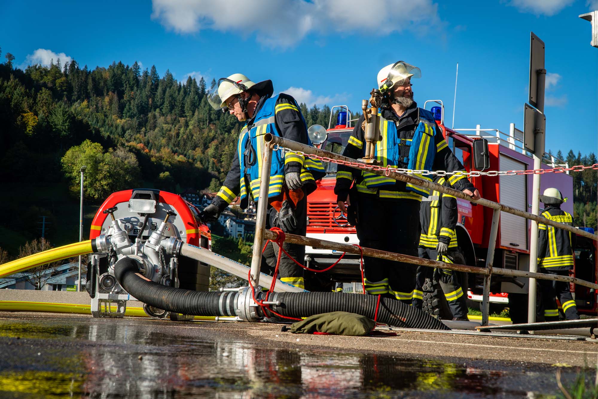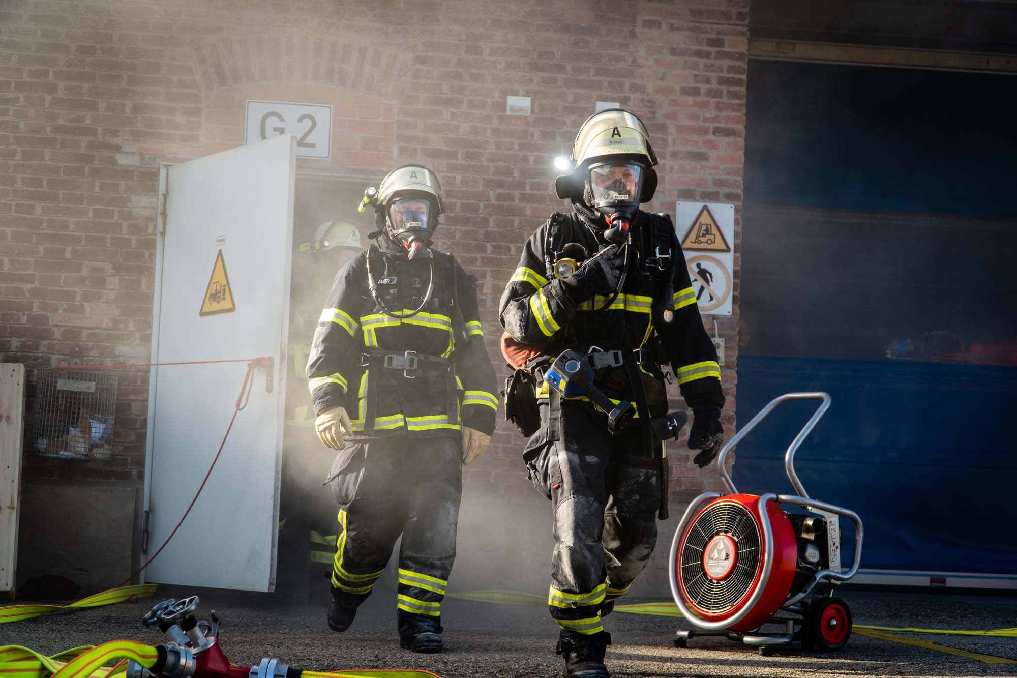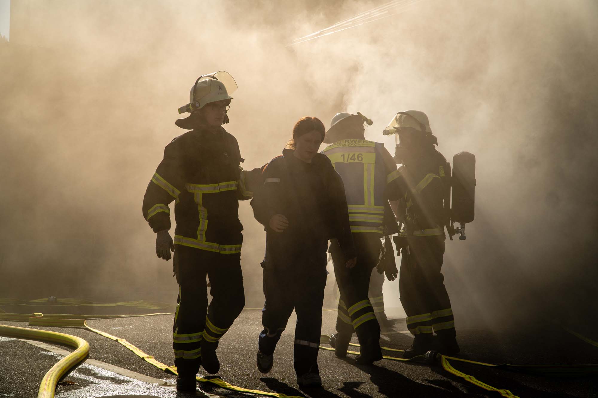 In einem Industriekomplex auf dem Gelände der Firma Sachtleben war ein fiktives Feuer ausgebrochen und der Hausmeister äußerte den zuerst eintreffenden Einsatzkräften den Verdacht, dass sich noch sieben seiner Kollegen im Gebäude befänden. Bereits nach kurzer Zeit konnten die vorrückenden Atemschutzgeräteträger die Vermissten retten und dem DRK OV Wolfach zur Betreuung übergeben.